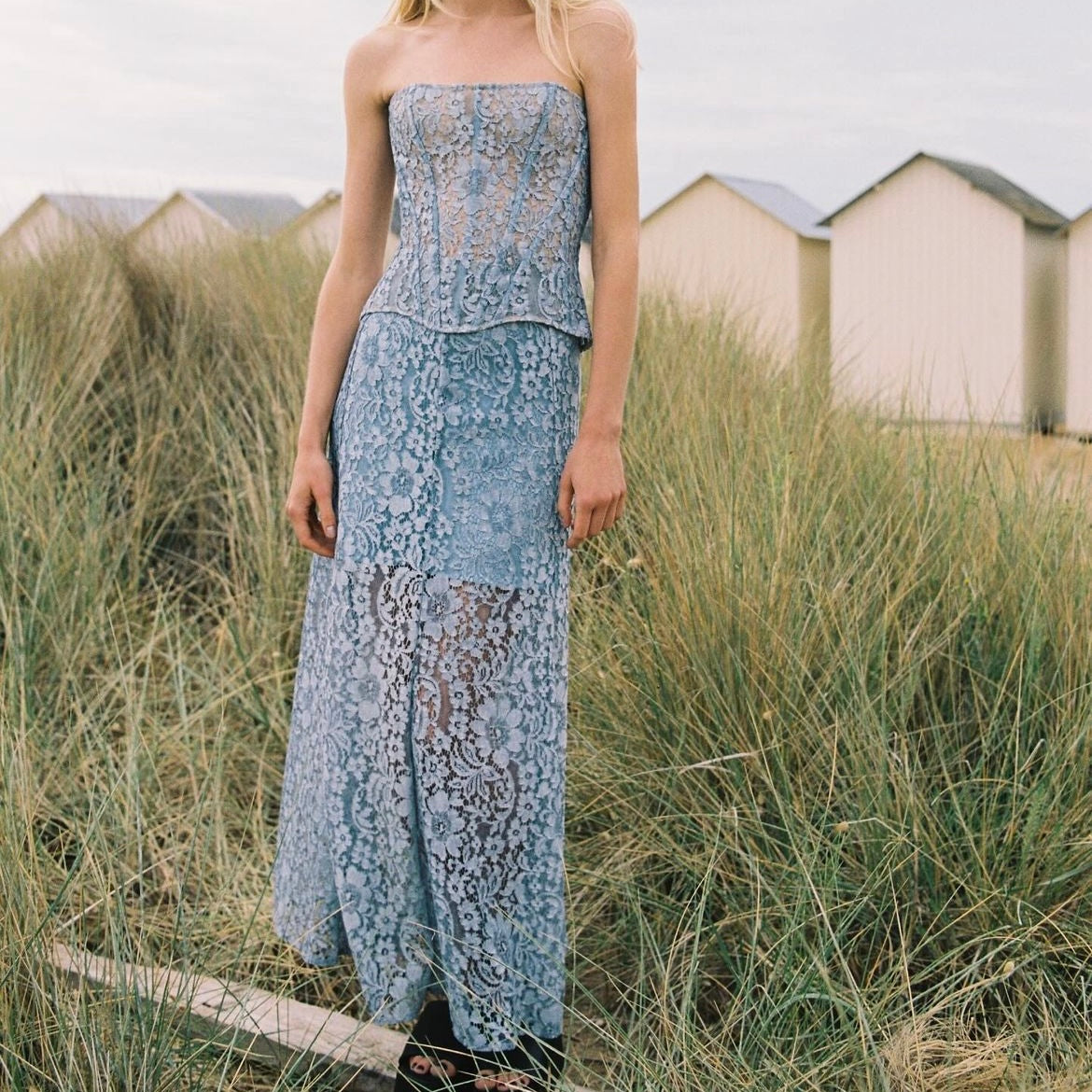 Lace Midi Skirt - Blue